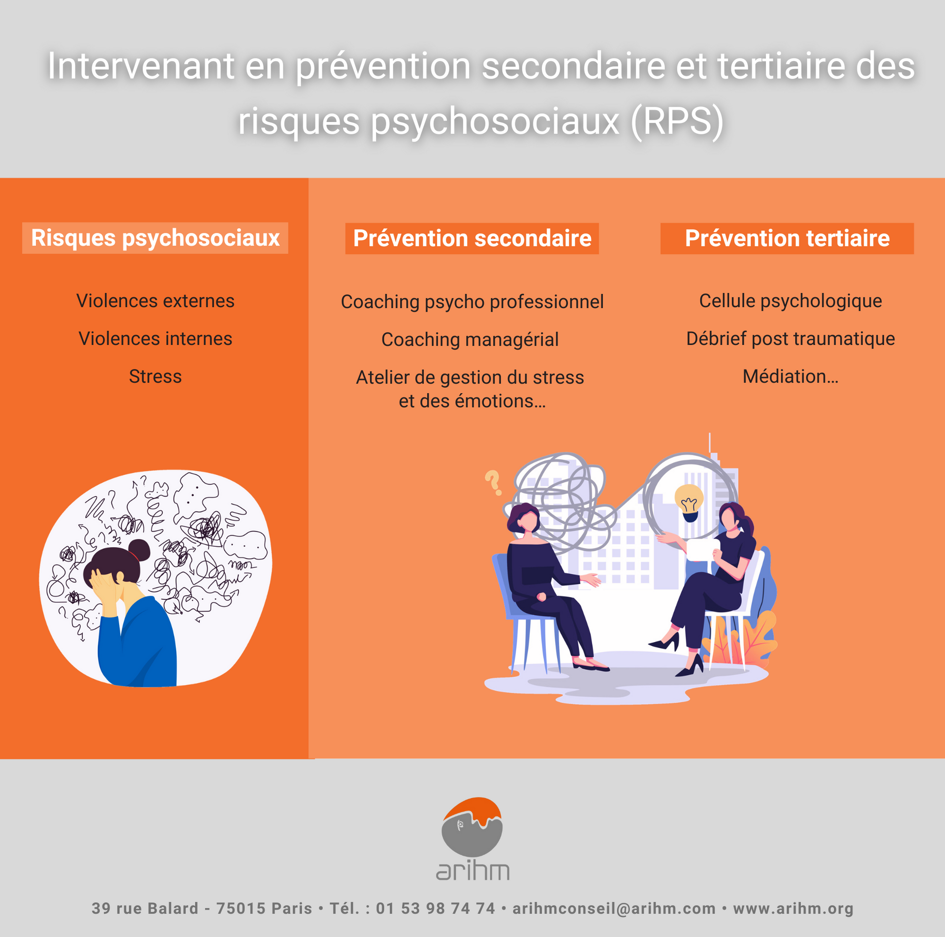 en proposant des actions permettant de réduire les atteintes à la santé des personnes, en les aidant à mieux gérer les situations à risques : gestion du stress et des émotions, coaching psycho professionnel, coaching managérial…